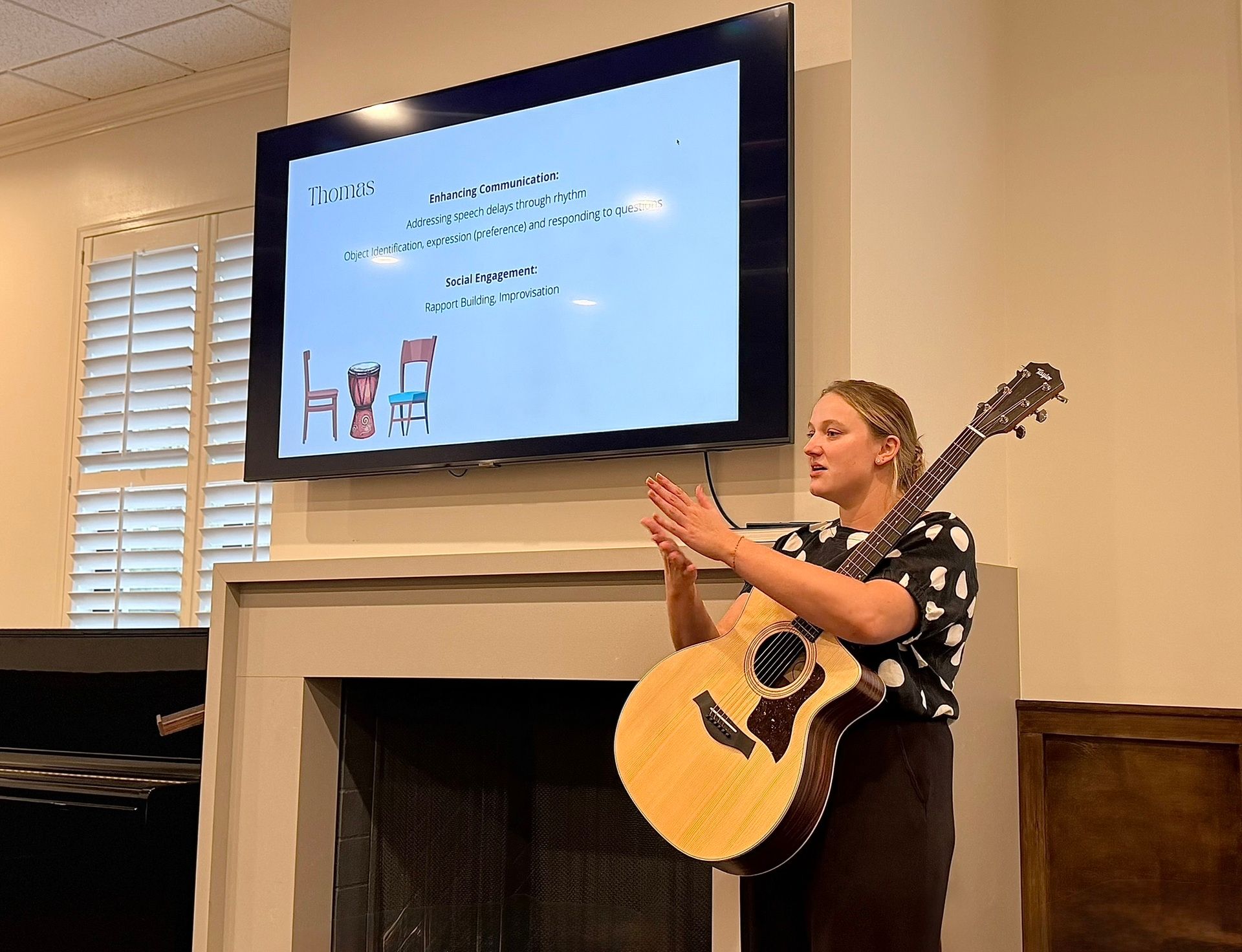 Check out the photo below of one of our music therapists, Haley, teaching the workshop!